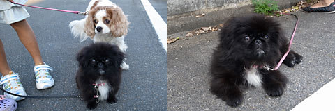 くーとメルの関係だけが心配点だっただけに、まずはひと安心というところだろうか?散歩も仲良しにと言いたいところが、メルちゃんのリードが噛みたくて仕方ないくーちゃん・・・メルにとってはホント面倒くさい相手なのだろう、悲しげにSOS目線を送っておくるが、がんばりなさい!と言ってやるしかできない。ホントの意味で認めあうにはもう少しメルちゃんに犬社会の勉強を受けないと駄目かな?