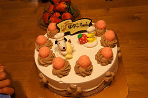 そんな娘のバースデイケーキは、いつもとは趣向をかえて31アイスクリームの「ハッピーアニバーサリー!フローム”スヌーピー”(ホワイト)」だ。えぇ~アイスのケーキ?よくわからんが、一見すると普通のケーキっぽい?でももちろん飾り付け以外は全部アイス。スポンジのかわりに、ストロベリーチーズケーキ、ベリーベリーストロベリー、バニラのアイス3種構造になっている。うん、なかなか美味い。でもちょっと甘いなぁ~でも、たまにはこういうのも悪くない。