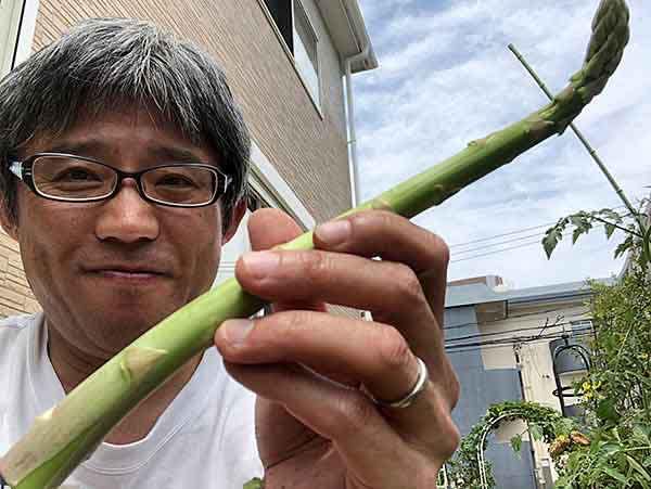 今朝アスパラガス収穫済ませていたが、半日で1本結構伸びてきたので収穫しちゃうことに。うん、いいサイズだ。改めて、タマネギだろうがニンニクだろうが、アスパラガスだろうが、我が家産は愛情詰まっているので出来栄えはどうであれ美味いはずだ。しっかり喰ってあげるからねぇ〜!