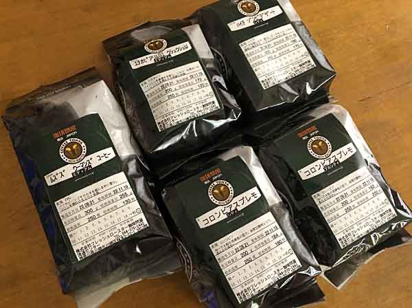 2022-08-29 5つの珈琲豆ゲット! Coffee 概ね月一でコーヒー豆を購入しているが、今月も5つの珈琲豆を計1.1kgゲット。1番下のウーマンズコーヒー以外は何度も飲んだことあるが、今月のショップオススメ豆はすごく秀逸!今から開封が楽しみだ! コロンビアスプレモ(シティー/+40秒)&(フルシティー/+60秒) エチオピア リム G1 ウシュウシュ ウォッシュド(ミディアム) ハイチ ゾンビ デザート(シティ) マラウィ ムズズ ウーマンズコーヒー(ミディアム)