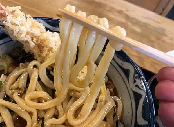 早速、躊躇なく卵黄崩して頂くとしよう!う〜ん、この太めのうどん相変わらず美味〜い!このコシの強さとツルツルの喉越しの良さ、更にもちもちの食感・・・たまらんぞぉ〜美味い!