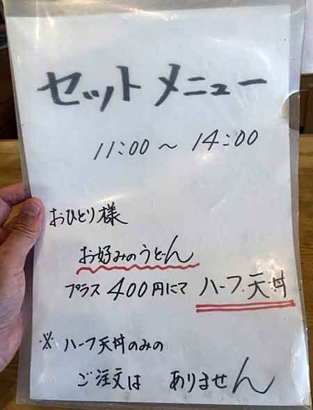 ここの名物はずばり天ころうどんだ。更にハーフ天丼セットがお決まりだもん、即決定だ!