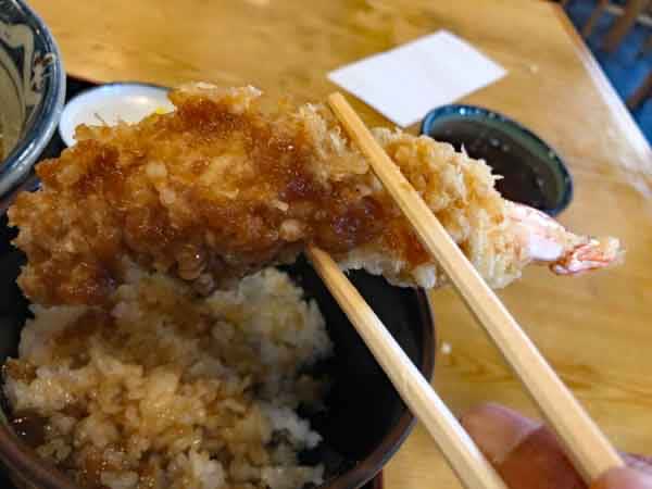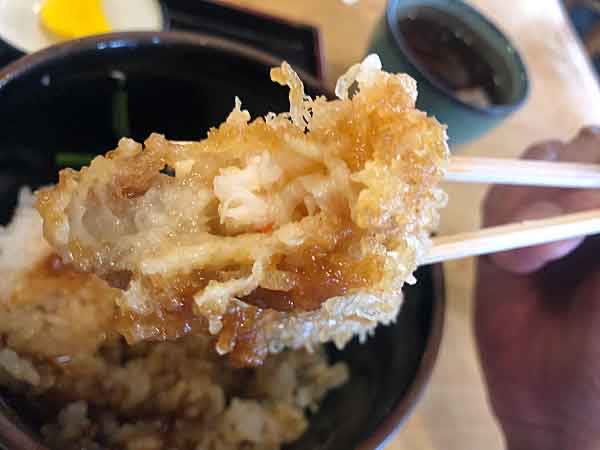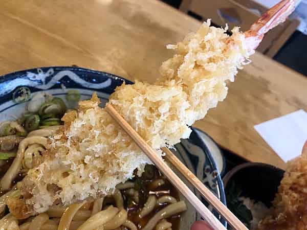 そして、海老天の衣のサクサク感と海老のプリプリ感はもう説明の必要ないよね。めっちゃ美味い!人並みほど海老天好きという訳ではないが、今日に限っては海老天必須だ。