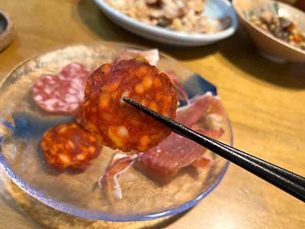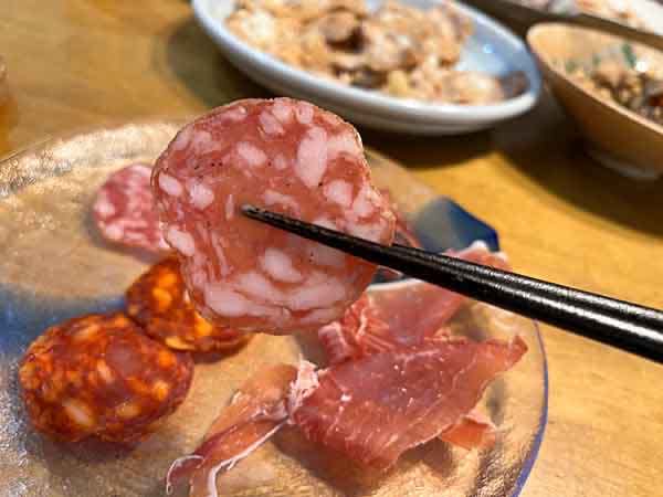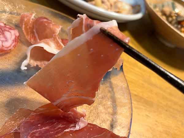 反して、2種のサラミと生ハムはガッツリと美味〜い!とにかくどんな酒ともばっちりだもんね。サラミの濃厚味もいいが、特にこの生ハムの塩味ぐらいが絶妙!ダメだ、いくらでも食えちゃう。止まらないよ。