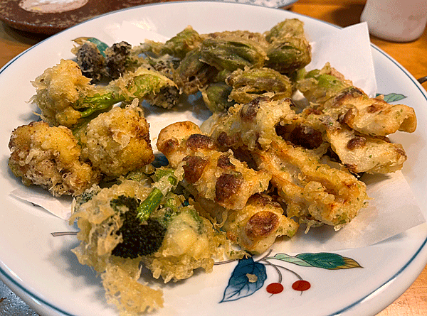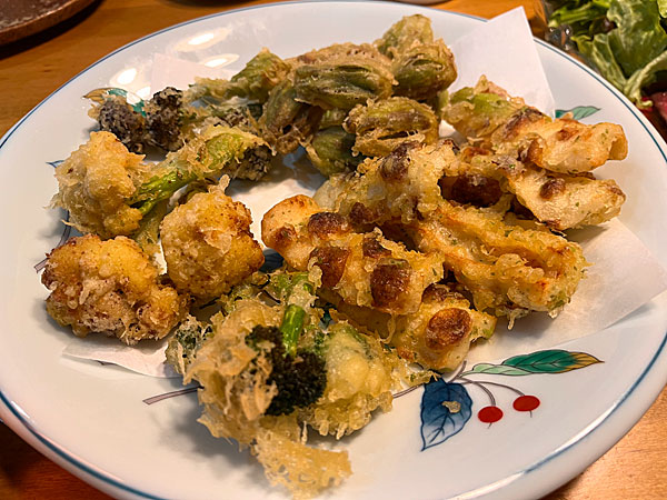 更に我が家産のスティックブロッコリーとカリフラワーの天ぷらだ!