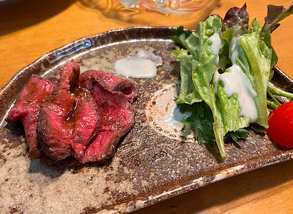 だって見てよぉ〜!今宵のアテはローストビーフだ!おぉ〜いい色してるじゃない。おぉ〜このなめらなかな舌触り、そして噛め度に肉の旨みがじわ〜っとくるんだよねぇ〜。ひと齧りしたら焼酎を煽る・・・もう〜エンドレスじゃん!